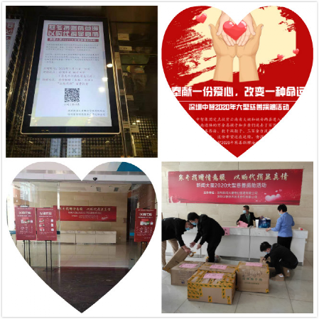 重宣傳,擴(kuò)大慈善捐贈(zèng)“朋友圈”?;顒?dòng)前期,深圳公司不僅通過郵箱、微信群、微信公眾號向公司全體員工及合作伙伴發(fā)起倡議,同時(shí)聯(lián)合新聞大廈物業(yè)加強(qiáng)宣傳,通過線上電梯廣告全天滾動(dòng)播放、線下1樓設(shè)置實(shí)物捐贈(zèng)點(diǎn)相結(jié)合,附以KT版展架、橫幅等多元化宣傳載體,積極宣傳、動(dòng)員廣大社會愛心人士參與本次捐贈(zèng)活動(dòng)。