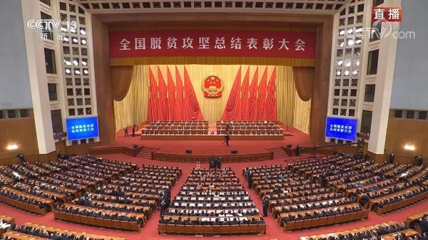 2021年2月25日上午,全國(guó)脫貧攻堅(jiān)總結(jié)表彰大會(huì)在北京人民大會(huì)堂隆重舉行。中共中央總書記、國(guó)家主席、中央軍委主席習(xí)近平向“全國(guó)脫貧攻堅(jiān)楷?!睒s譽(yù)稱號(hào)獲得者、“全國(guó)脫貧攻堅(jiān)先進(jìn)個(gè)人”稱號(hào)獲得者和“全國(guó)脫貧攻堅(jiān)先進(jìn)集體”稱號(hào)獲得者代表頒獎(jiǎng)并發(fā)表了重要講話。
