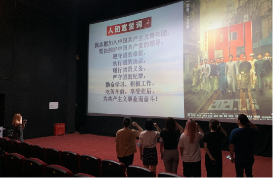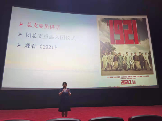 正式觀影前,首先由黨總支委員張淳玨開場致詞,簡單介紹了電影的歷史背景:“1921年,一群年輕人做了一件驚天動地的大事…”建黨100周年,正如影片封面上的那群年輕人,風(fēng)華正茂正青春!